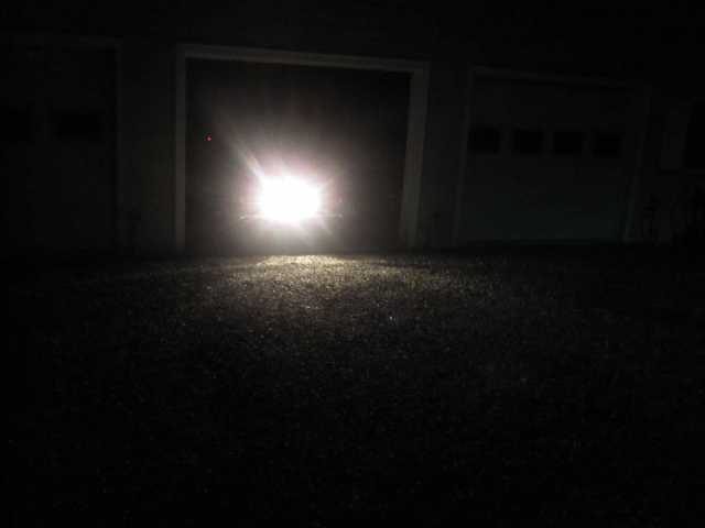 They are extremely bright; basically LEGAL 55 watt driving lights. Photo below was taken with engine NOT running--volts would have been 14.5+ then and lights would have been brighter. You will get the idea tho. This has been a good project with the Hornet. Sorely needed if you drive at night; I don't much but now I CAN ~~~~~~~
