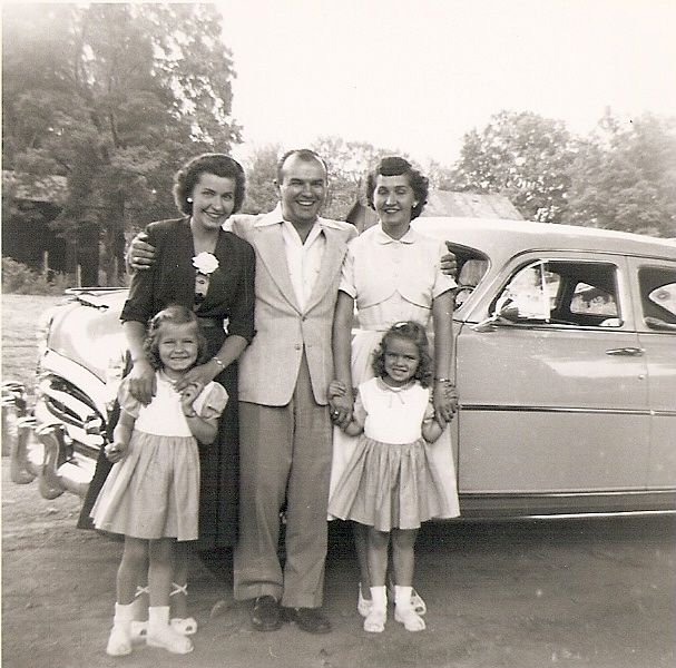 This photo shoot is a rarity - usually we have 1 photo that really doesn't show much detail. The car appears to be fairly new as shinny as it is. I get the biggest kick out of seeing the girls all dressed up - compare to todays kids running around in tattered jeans and t-shirts with slogans that announce to the world the wearer is an idiot. Notice also the ladies are dressed up to go visiting. Also rare in this day and age among the current generation. It was an "era" thing. True story - my youngest daughter was, oh, 2 or maybe 3 years old so this would have been around 1973. My good friend, Mike Elwell, and his mother arrived for a visit as they were in the area (they lived in Mass. - I lived in Maine at the time). Mike's mother was dressed to the 9's, as we used to say - summer frock, white gloves, summer hat. I will forever have the scene in my mind of her down on the floor of my living room, in all her finery, playing with the baby.