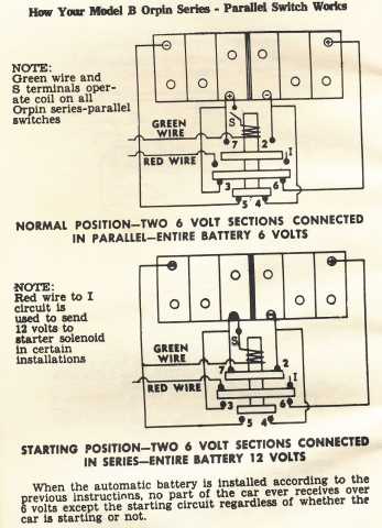I use an Orpin Model B series/parallel switch on my '31 Franklin. Starts on 12 Volts and runs on 6 volts; starter turns faster & I am happier~~~