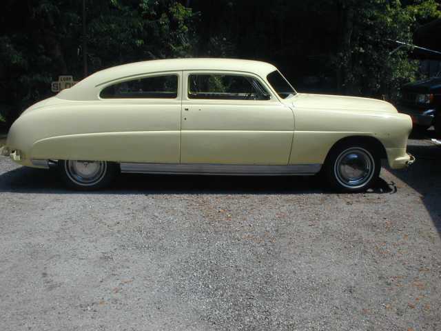 Yes it's a 49 Super 6 two door I rescued. Had been in the clutches of three "Wanna be rodders". All they knew was take it off and throw it away..! By the time I got it, it was barely recognizable as a Hudson. It even had a 1949-50 Mercury two piece grille in the trunk! It was a rolling hulk, missing everything! I later found out that the car had been wrecked. Hit in the drivers cowl section. I had to section the cowl and replace the left front fender and door. Found a 262 and a HydraMatic, Rebuilt both of them. As some would call it "Clabbered Up" but since it was junk, I used what I could find. So far 18 states have made contributions. This is a great group of enthusiast! The help never ends. I found a 51 Hornet four door that contributed the cowl section and the steering column with the HydraMatic shift stuff along with the back seat. The front seat, motor mounts and battery carrier came from a Pacemaker parts car Chris (cpr333)I donated. and all 5 wheels came from Lance in Concord N.C.