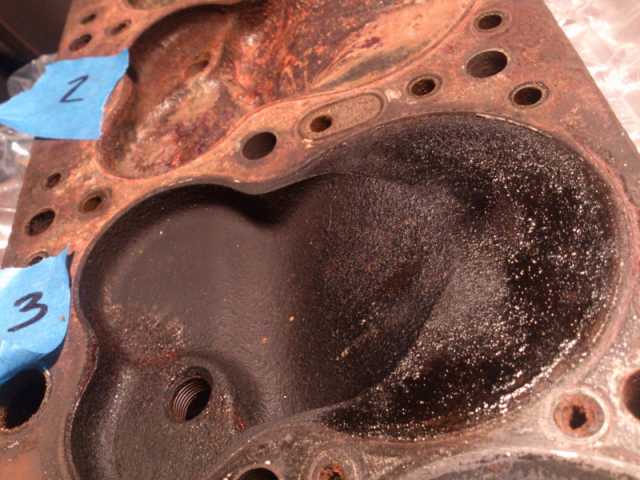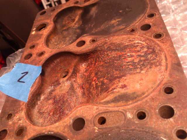 Cylinder 6 had an exhaust valve replaced in its past. The intake valve and surrounding area was pitted.