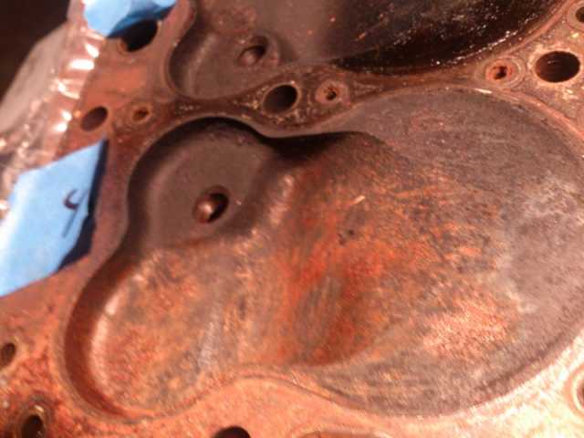 I then pulled the head. A previous "owner/mechanic" had used form-a-gasket under the bolt heads and around the water return goose neck and in areas on the actual head gasket. The bolts came out without incident, but upon removing the head I found a number of potential problems.