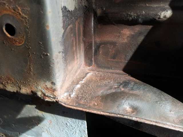 So taking off the rubber coating and chasing existing rust out of the drain area just south of the A pillar on the passenger side I find an area that looks like it should be welded but looks to have some old broken welds. Russ I think you did this very repair on at least the driver side A pillar. On your blog I can see some welding visegrips holding various aspects of the joint together.