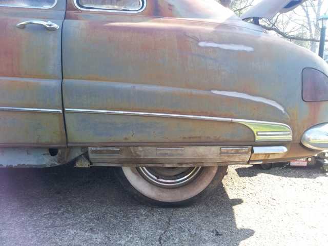 Raymond, at the time I didn't have the money for new springs but I had a 54 Hudson parts car with rear springs I hoped would be good enough. They did not raised the rear of my car as much as I hoped but did raise rear one inch at center of wheel but not as high as your car sets.. I just went out to measure height to compare with your photo and your car sets 1/4 inch higher than mine at the same measurement location as your car. Is your measurement with car stripped down? That my account for the difference between our cars ride height. If you chose to reuse your springs, clean and look very carefully at the spring leaves in the middle where they are not covered, for any stress cracks. That area near the wrapping and a short distance under wrapping is where most of my brakes were located as well as at centering bolt hole. "Hudson also recommends rear springs with metal covers be lubricated every 10,000 miles. Lubricate through hole in cover using viscous chassis lubricant, use special tool for that purpose." My springs obviously were not lubed as recommended. I don't know where one would find the special tool or where the lube hole might me. Something else to look for.
