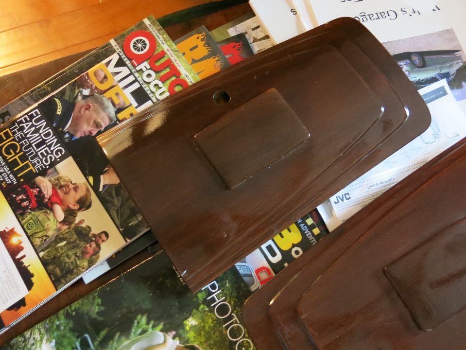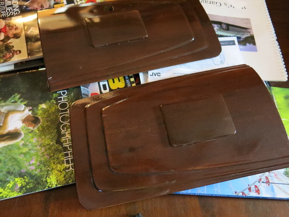 Faux wood paint on glove compartment doors. Entire dash will be done in this woodgrain style.