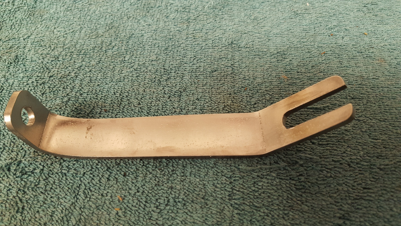 The approach with this brace configuration is a dead end. Unfortunately, the bolt location (cylinder head bolt that secures throttle return spring) selected is very problematic. If the brace is too low it interferes with the oil cap and the throttle return spring. The base of the air cleaner is not even; the middle is deeper than the outer regions. I suppose that a brace configuration closer to the original could attach to the forward mounting bolt of the oil filter.