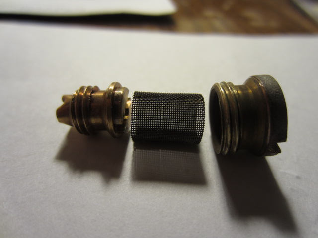 Heres pics of the check valve, screen & plug cap. The screen fits snug on the shoulder of the valve & snug in the bore of the plug cap. Kinda like it grew there.