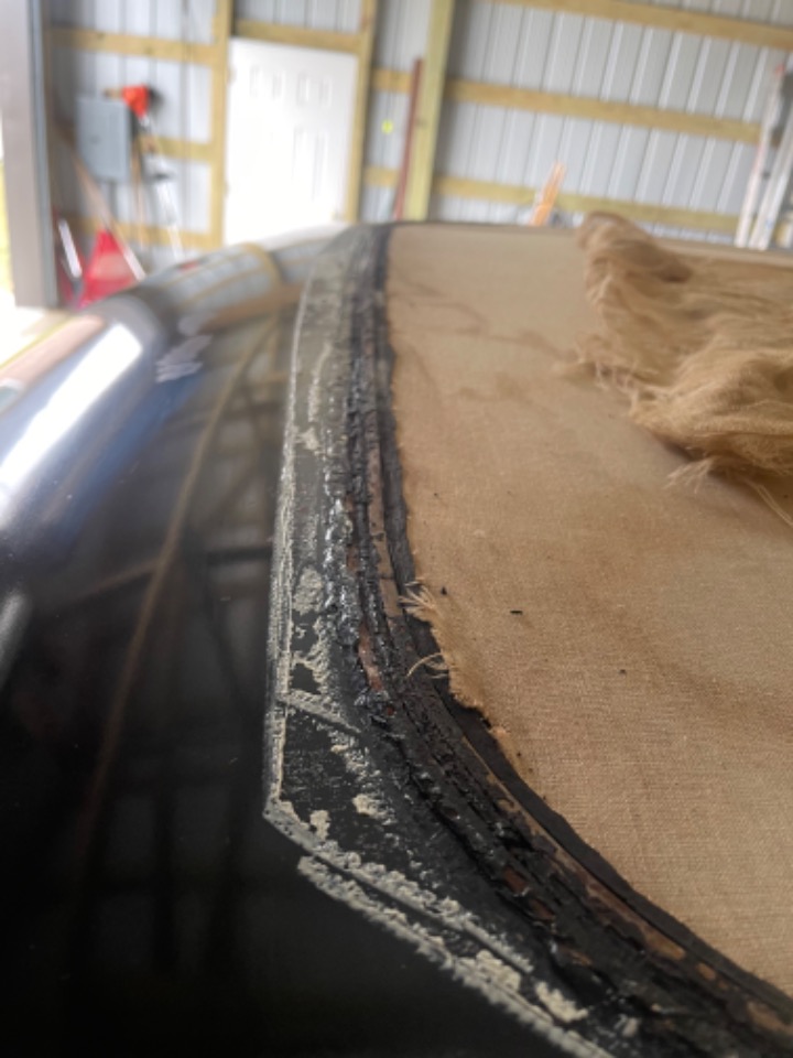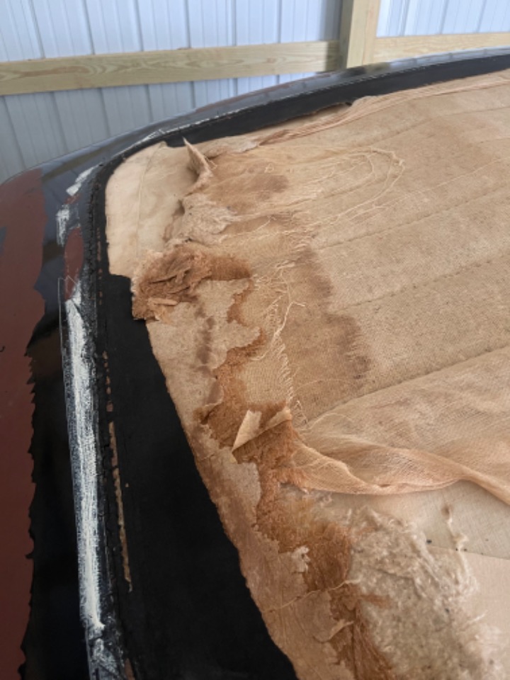 Anyways, here is some pics of what I found. I find it scary but also fascinating lol. So you can see the different original layers which is cool. Bottom Muslin fabric, then a cotton padding, then what looks like another muslin fabric then the black “canvas” roof material. Boy is vinyl gonna be an upgrade! If anyone knows someone around SWLA or SETX that could come assist and give advice, I wouldn’t mind paying their way and paying for their time…and their beer! Lol I’m just afraid ima mess something up. Can’t really afford to make a big mistake lol