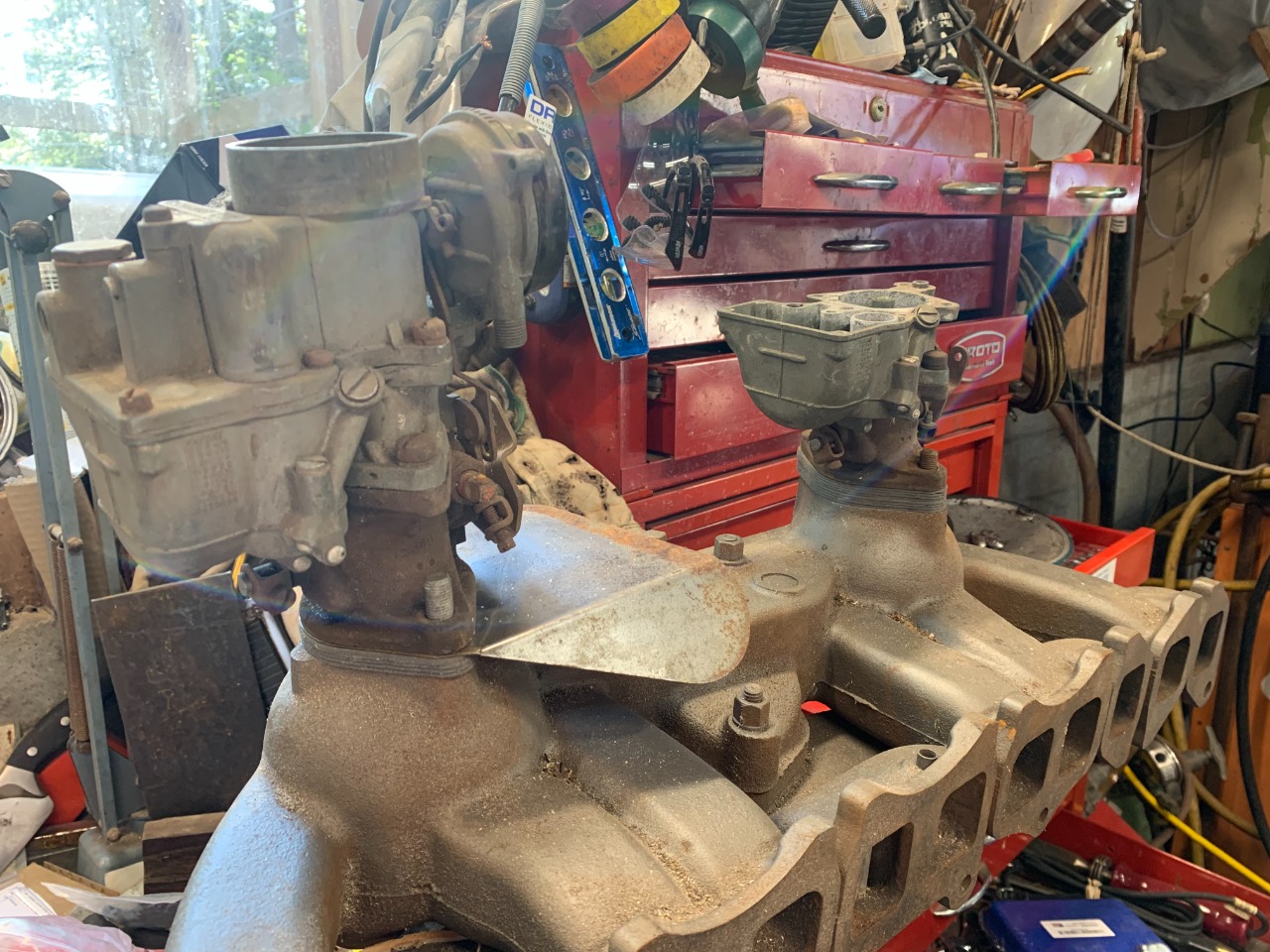 '55-'56 intake and exhaust are different yet, and DO NOT interchange with anything prior, except the carbs and some of the linkage