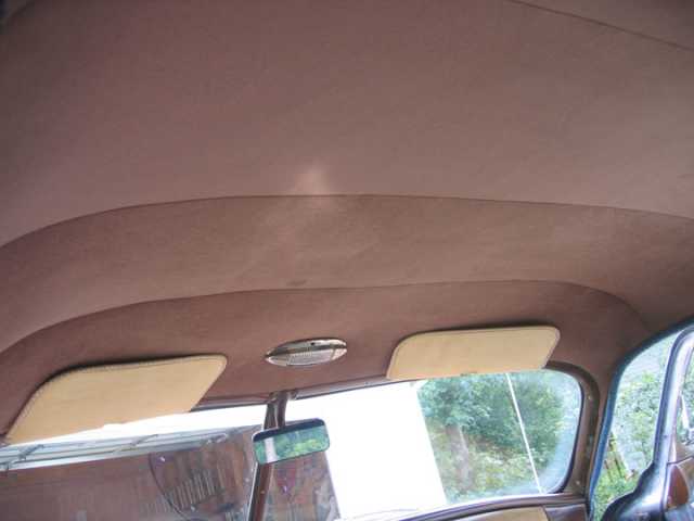 Ed, I'm trying to attach a few pics. I haven't done this on this forum yet so not sure what will happen. I took a sample of the old headliner to Hancock Fabrics and found a material that was pretty close to the same color and texture. I removed all the insulation and sanded the inside of the roof and then put all the insulation back. Richie.