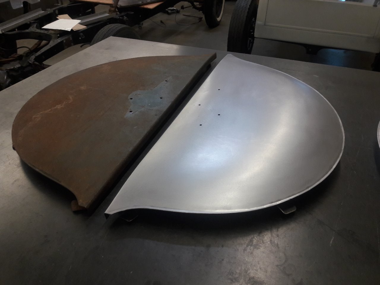 These Skirts were made by a Fabricator in Western reserve Chapter sweveral Yrs ago. He made three Sets and used a rubber seal from KGap around the Radius edge and they fasten front & rear at the bottom. Don't know what originals look like but I bought two Pr for my '37's and they look very nice and fit tight.